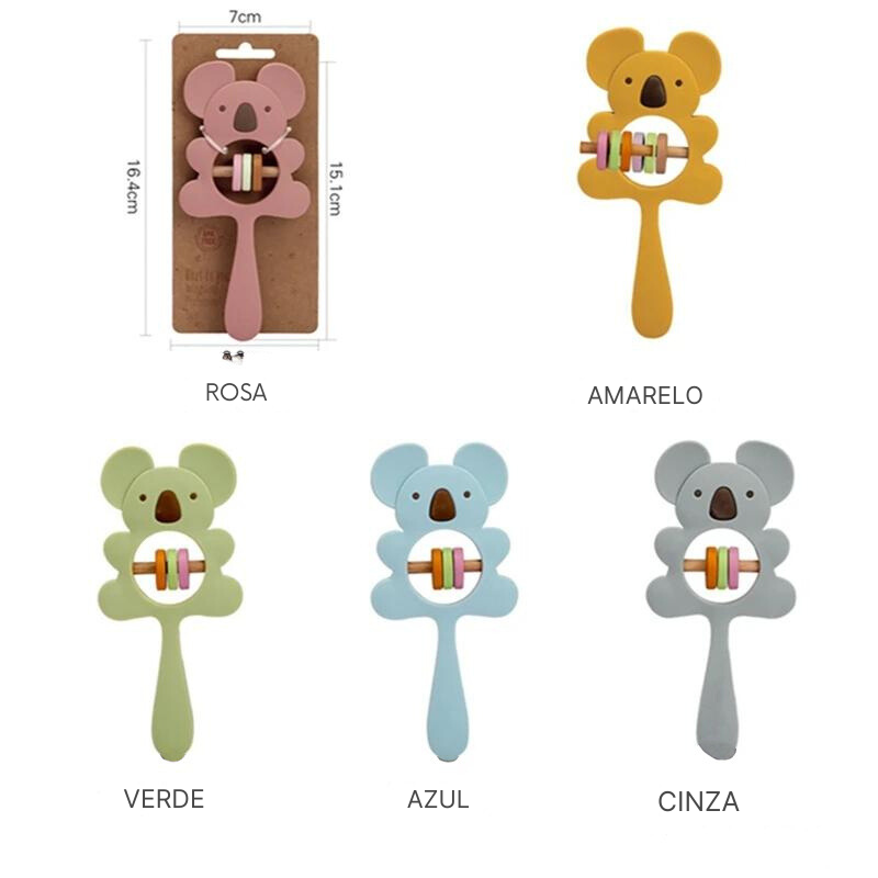 Mordedor Chocalho Coala Feliz em Silicone - BPA Free