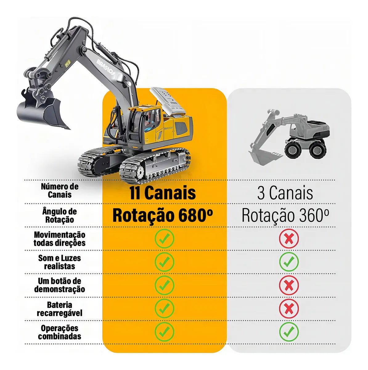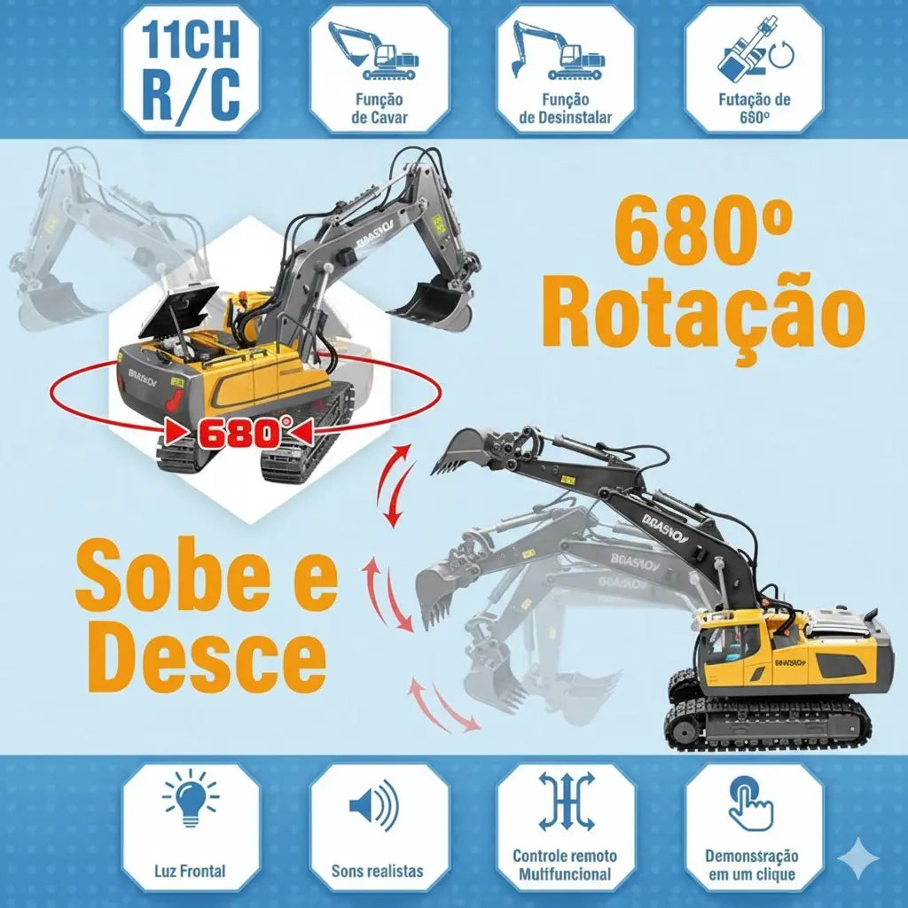 🔄 Rotação 680° da cabine – Para experiências de manobras completas como uma escavadeira de verdade.